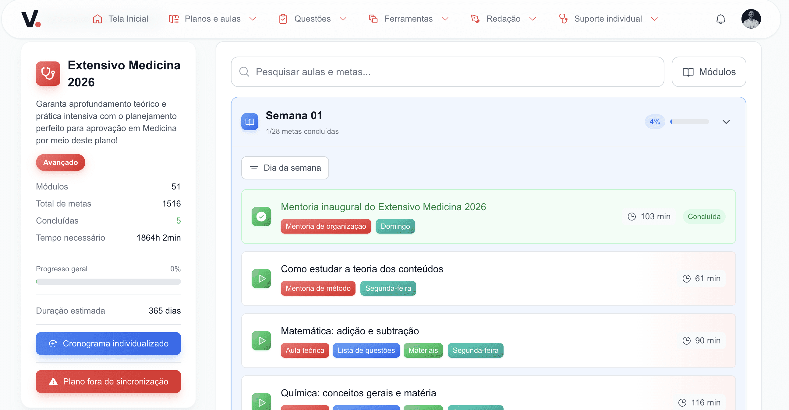 Plataforma com conteúdo completo, cronograma guiado, monitoria e suporte individualizado