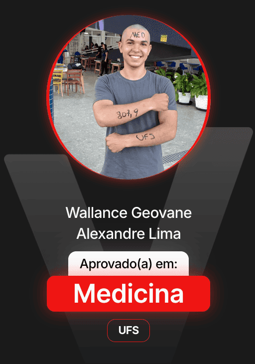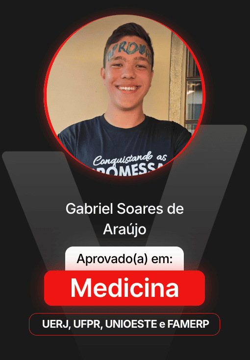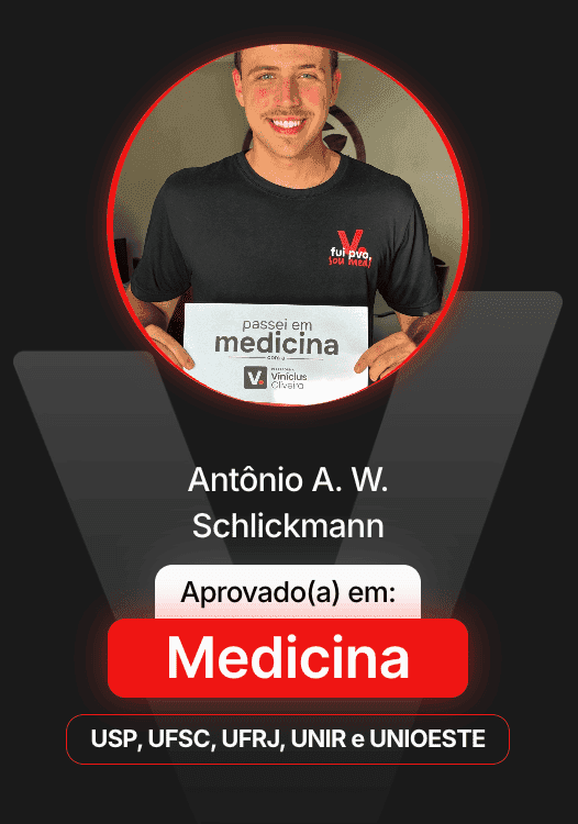 O que te entregamos é uma preparação intensa guiada por quem passa em Medicina todo ano e domina o ENEM e vestibulares. Eu - Vinícius Oliveira - conheço o caminho para sua aprovação!