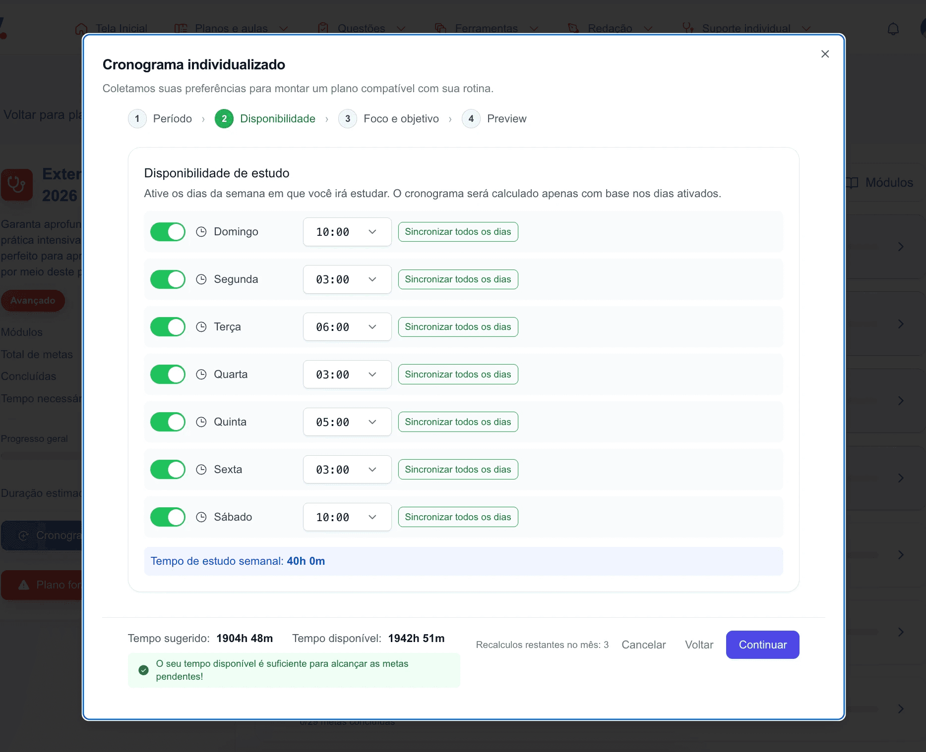 Cronogramas semanais, com o que estudar, quando revisar e como evoluir