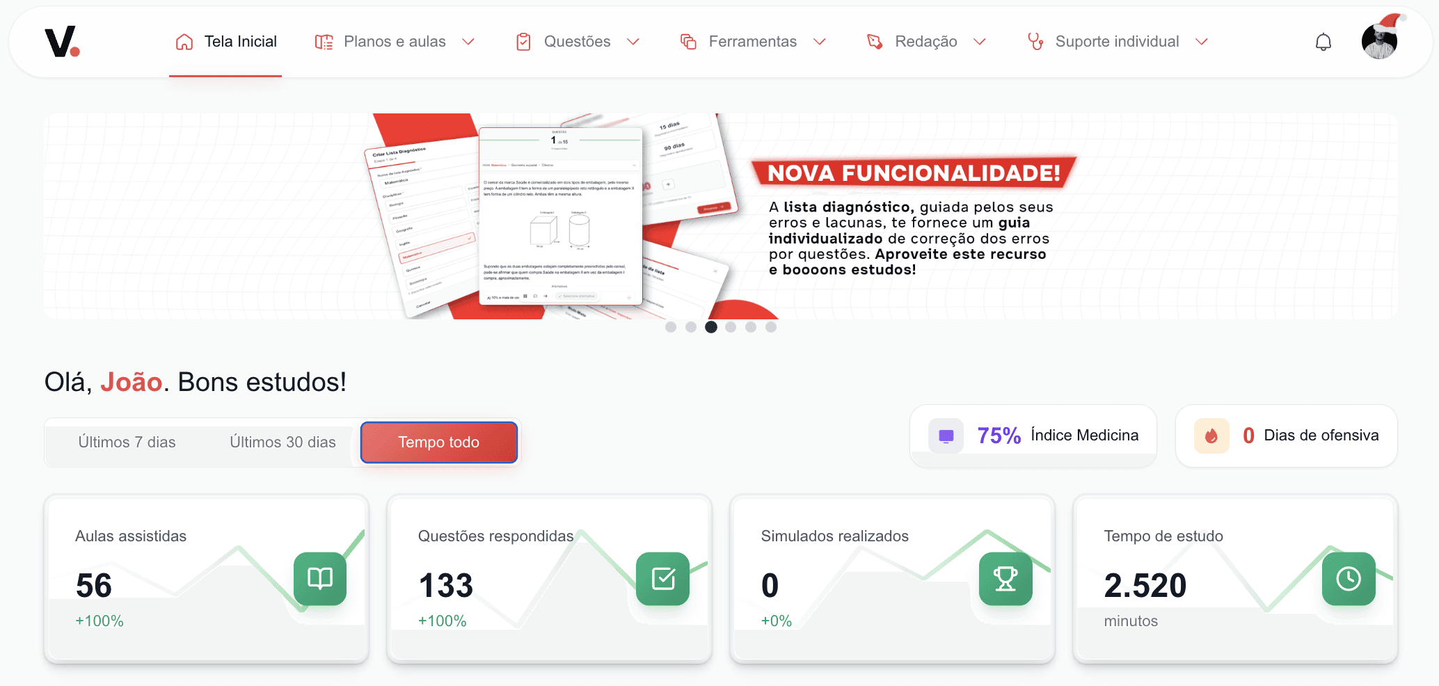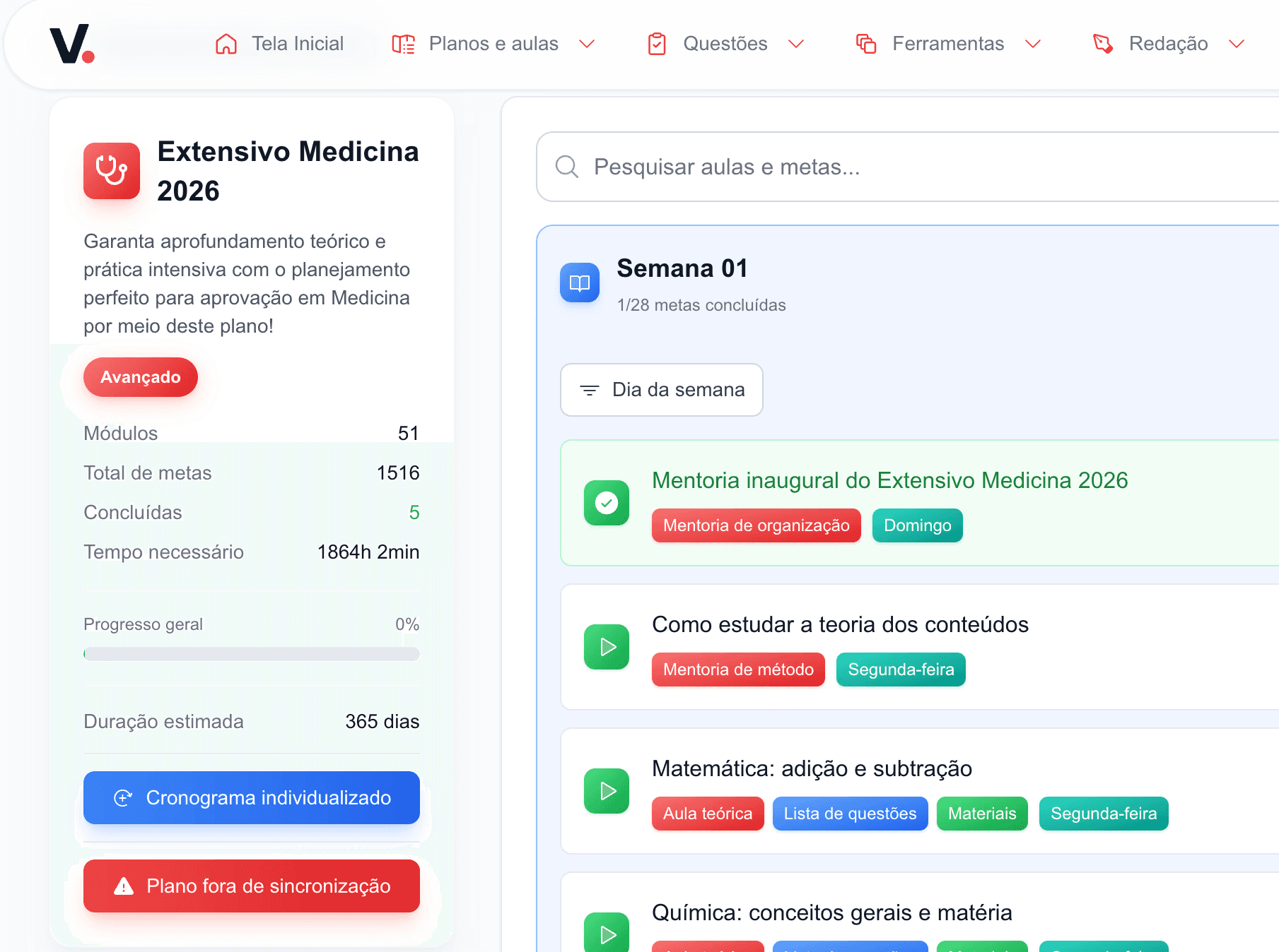 Plataforma tecnológica criada pelo professor Vinícius Oliveira, com ferramentas únicas no Brasil para garantir sua aprovação em Medicina.